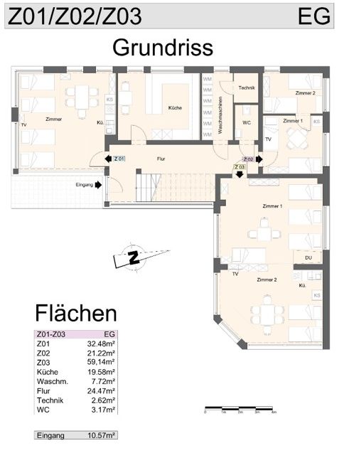 - Au 17a/Z4: 2 Zimmer mit Küche und Balkon - insgesamt 6 Schlafplätze mit allgemeinem WC und Badezimmer