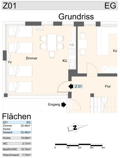 Au 17a/Z1: Zimmer mit Küche und Balkon - insgesamt 4 Schlafplätze mit allgemeinem WC und Badezimmer