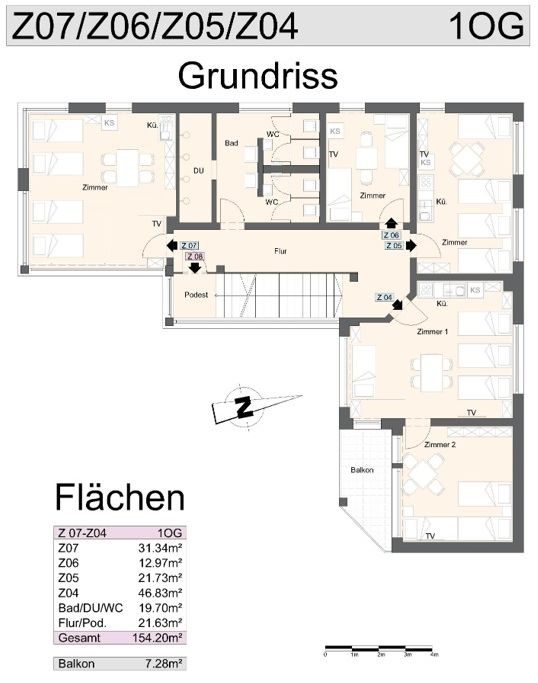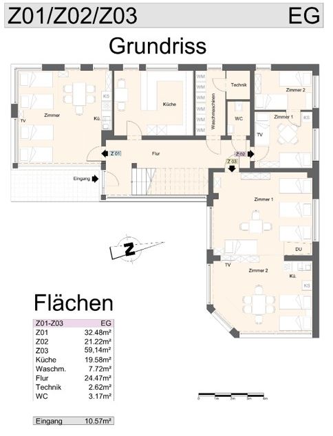 - Au 17a/Z2: 2 rooms - altogether 4 beds - kitchen, toilet and bathroom are common